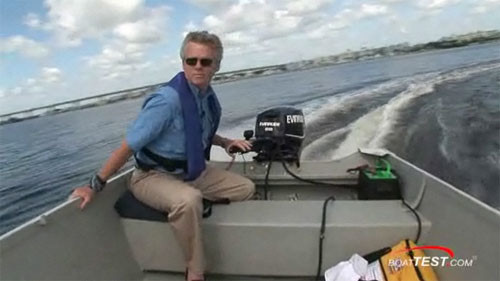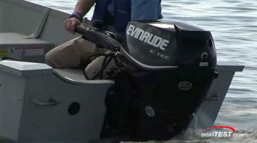 Evinrude E-TEC 25'i bir Alumacraft V16'ya uygun bir şekilde monte ettik. Bu boyutta motor için iyi bir eşleşme ve bize çok dengeli bir performans rakamları verdi.. Sadece 94.3 kg ağırlığında bir 1.78 m kiriş ile 5,10 metre uzunluğunda bir tekne ile ağırlığı, test dişlileri, iki kişi ve Evinrude E-TEC 25'in kendisi ve toplam test ağırlığı 430 kg idi.
